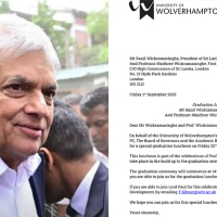 රනිල්ට එවූ ආරාධනාව සත්යයි..- බ්රිතාන්යයේ වුල්වර්හැම්ප්ටන් සරසවිය තහවුරු කරයි..